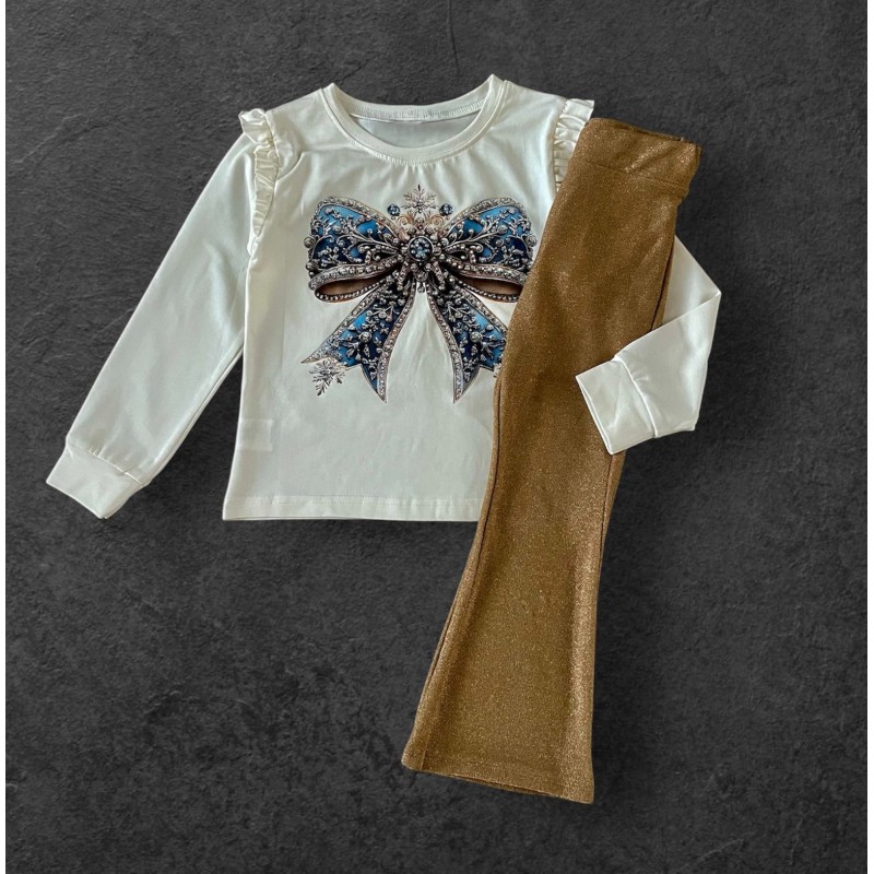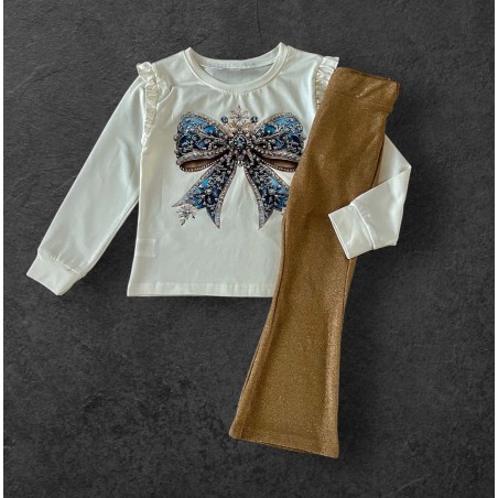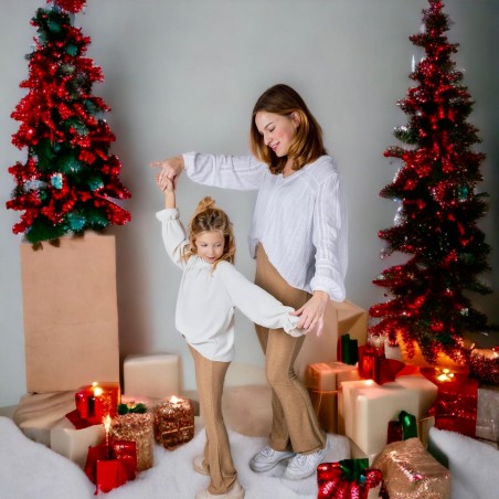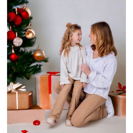 Hoe tof is deze flared broek met gouden glitter voor moeder dochter? Perfect voor een bruiloft of feestje.