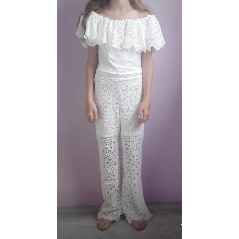 Ons model is 142 cm lang en draagt maat 134/140.